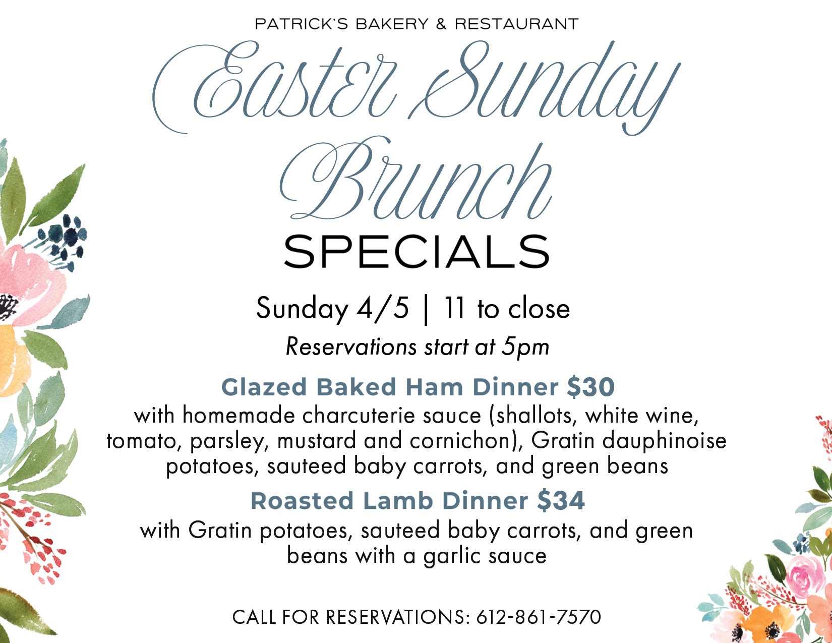 Glazed Baked Ham Dinner or Roasted Lamb Dinner — see PDF for full details